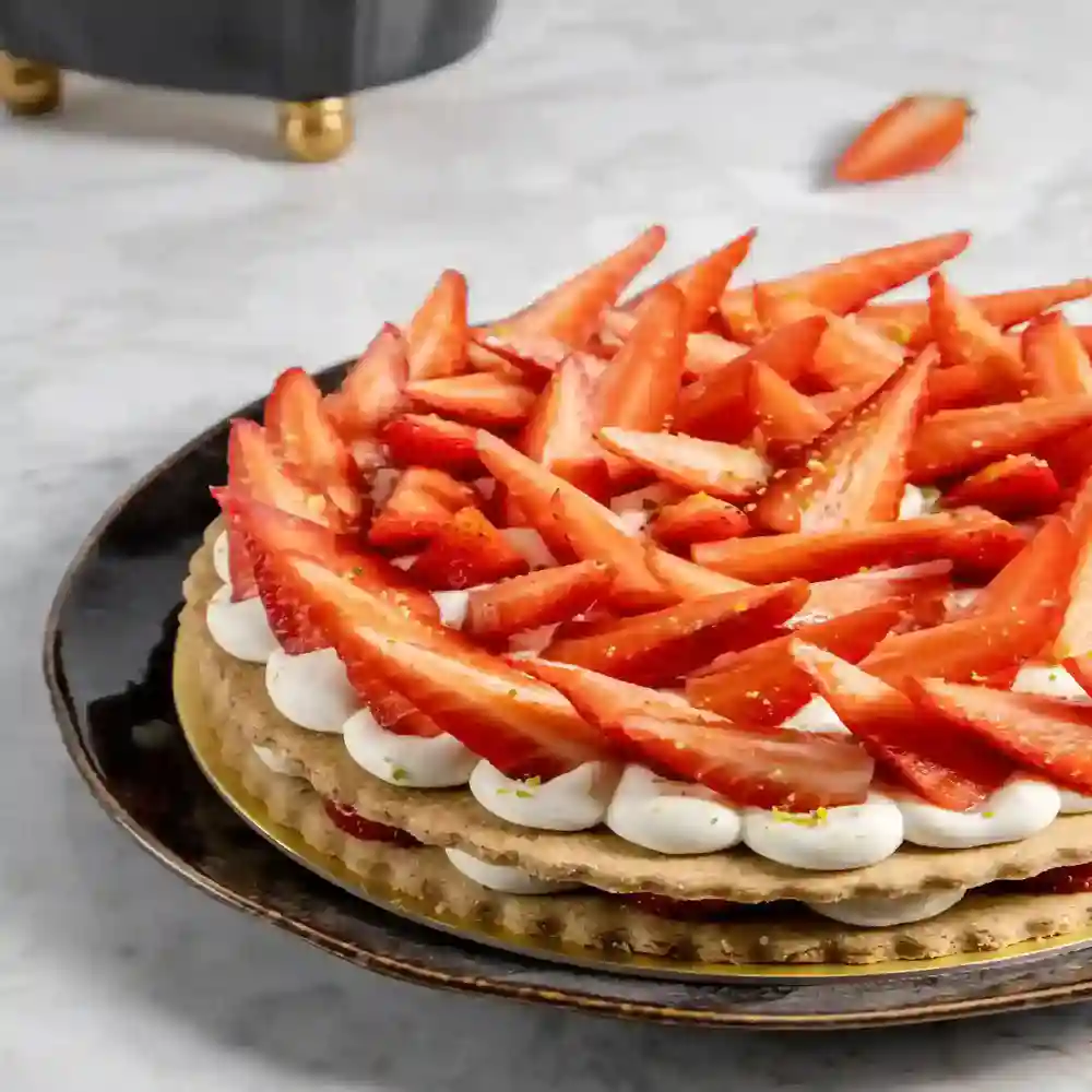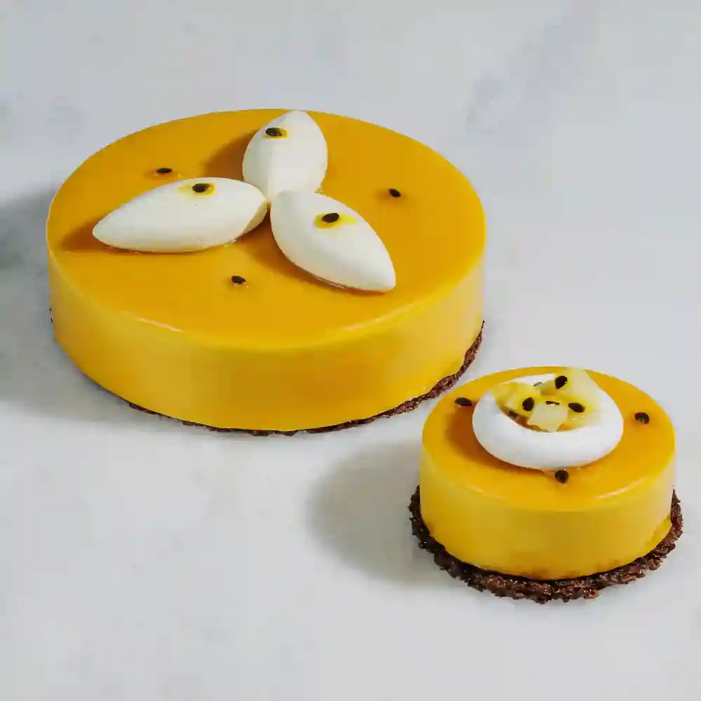 Moruq, manqo, marakuya, portağal. Əsl tropikal dad ahəngi. Yumşaq və pendirli krem və badam unundan keks.